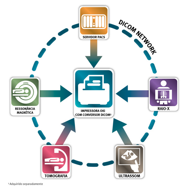- Integração simplificada, conecta-se diretamente aos aparelhos de exames médicos¹ e aos softwares de conversão de imagens DICOM²